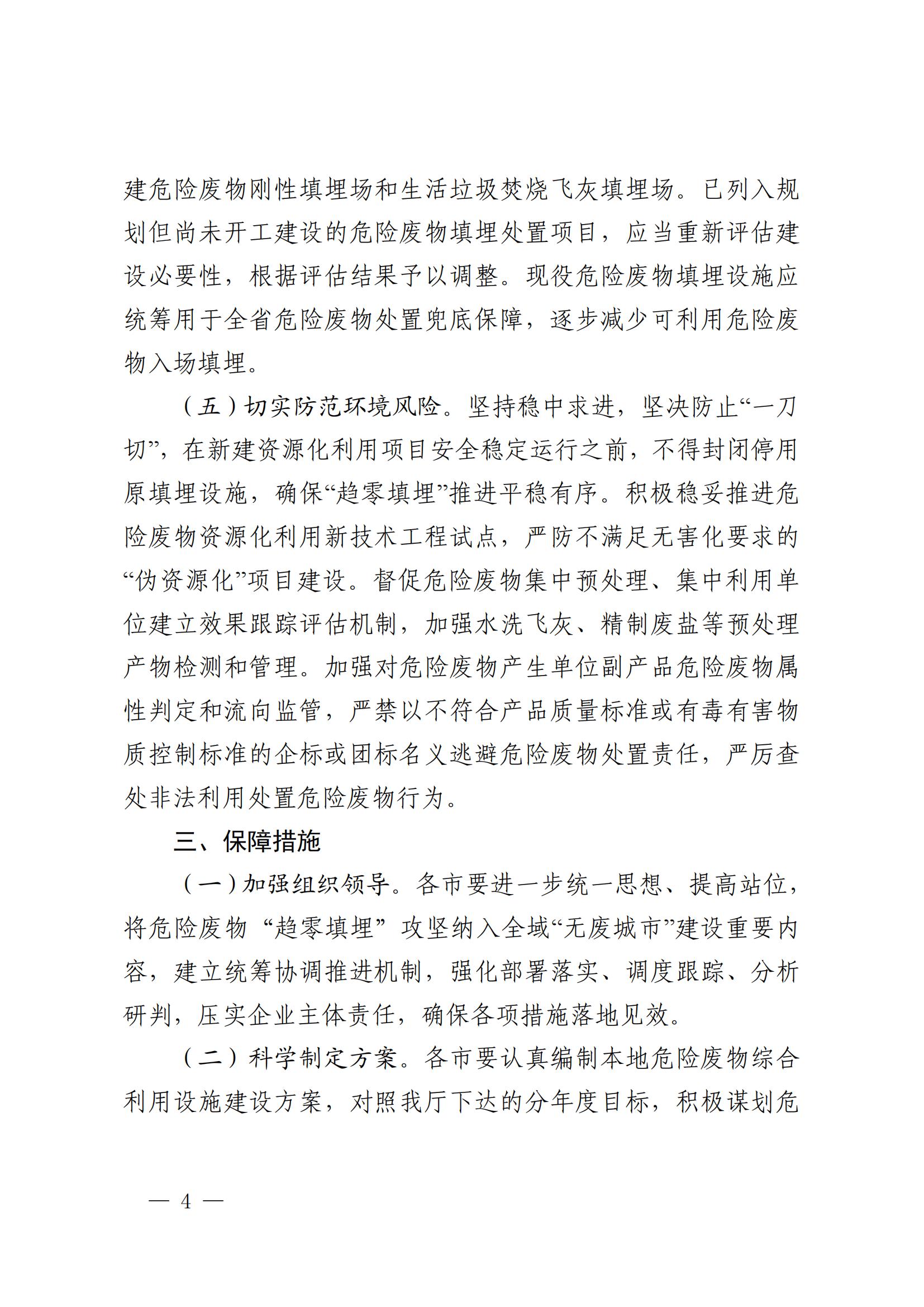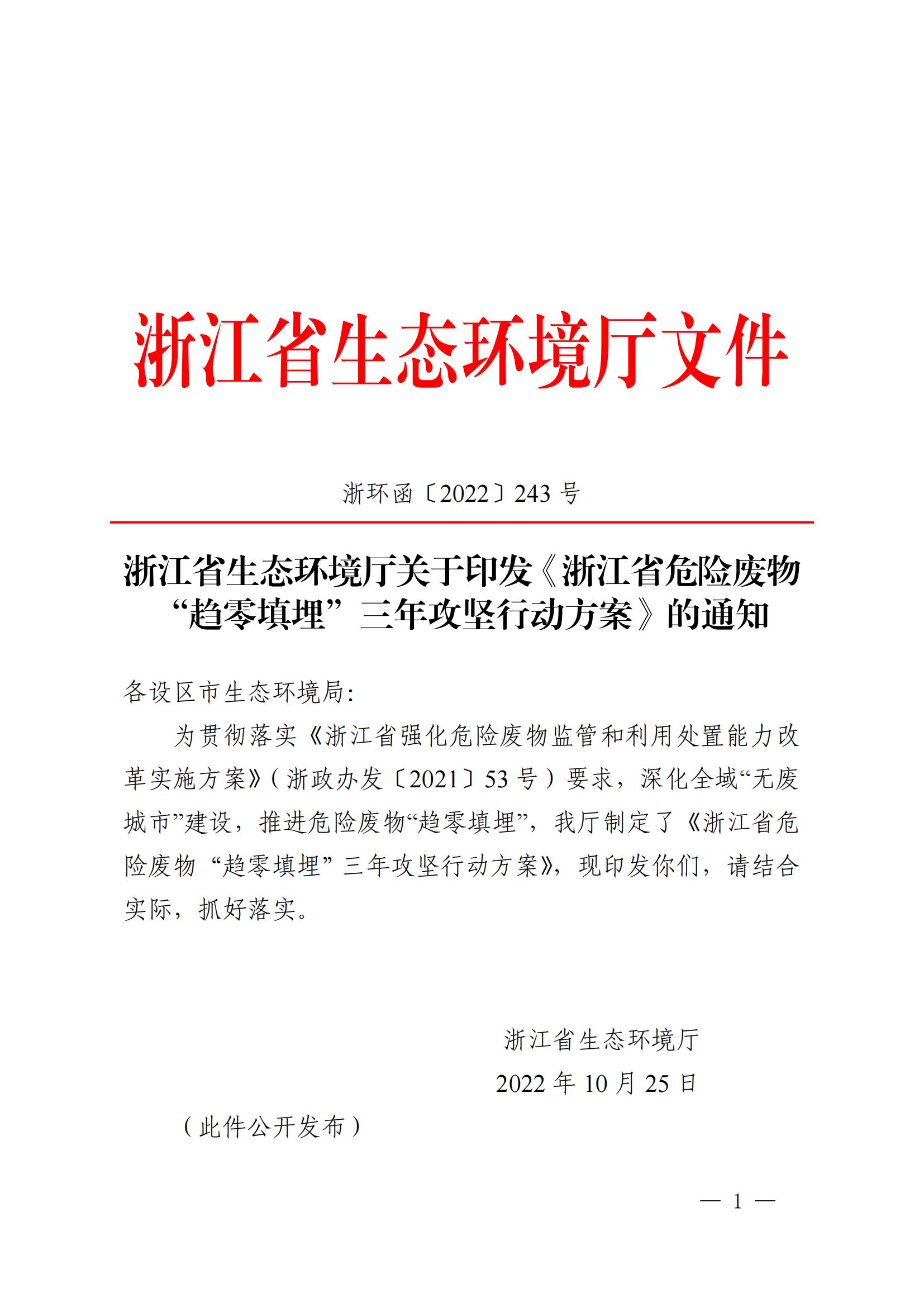 為貫徹落實(shí)《浙江省強(qiáng)化危險(xiǎn)廢物監(jiān)管和利用處置能力改革實(shí)施方案》(浙政辦發(fā)〔2021〕53號(hào))要求,深化全域“無(wú)廢城市”建設(shè),推進(jìn)危險(xiǎn)廢物“趨零填埋”,我廳制定了《浙江省危險(xiǎn)廢物“趨零填埋”三年攻堅(jiān)行動(dòng)方案》,現(xiàn)印發(fā)你們,請(qǐng)結(jié)合實(shí)際,抓好落實(shí)。