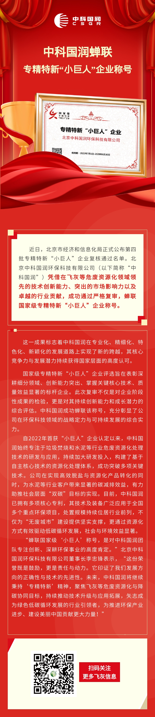 中科國(guó)潤(rùn)蟬聯(lián)專精特新“小巨人”企業(yè)稱號(hào)