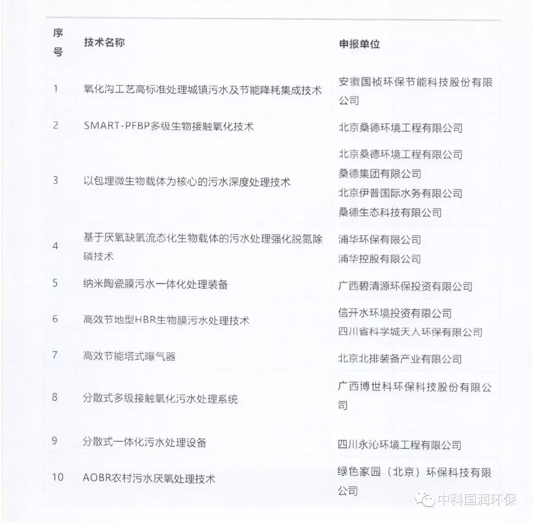 2018年重點環(huán)境保護實用技術(shù)名錄(公示稿)