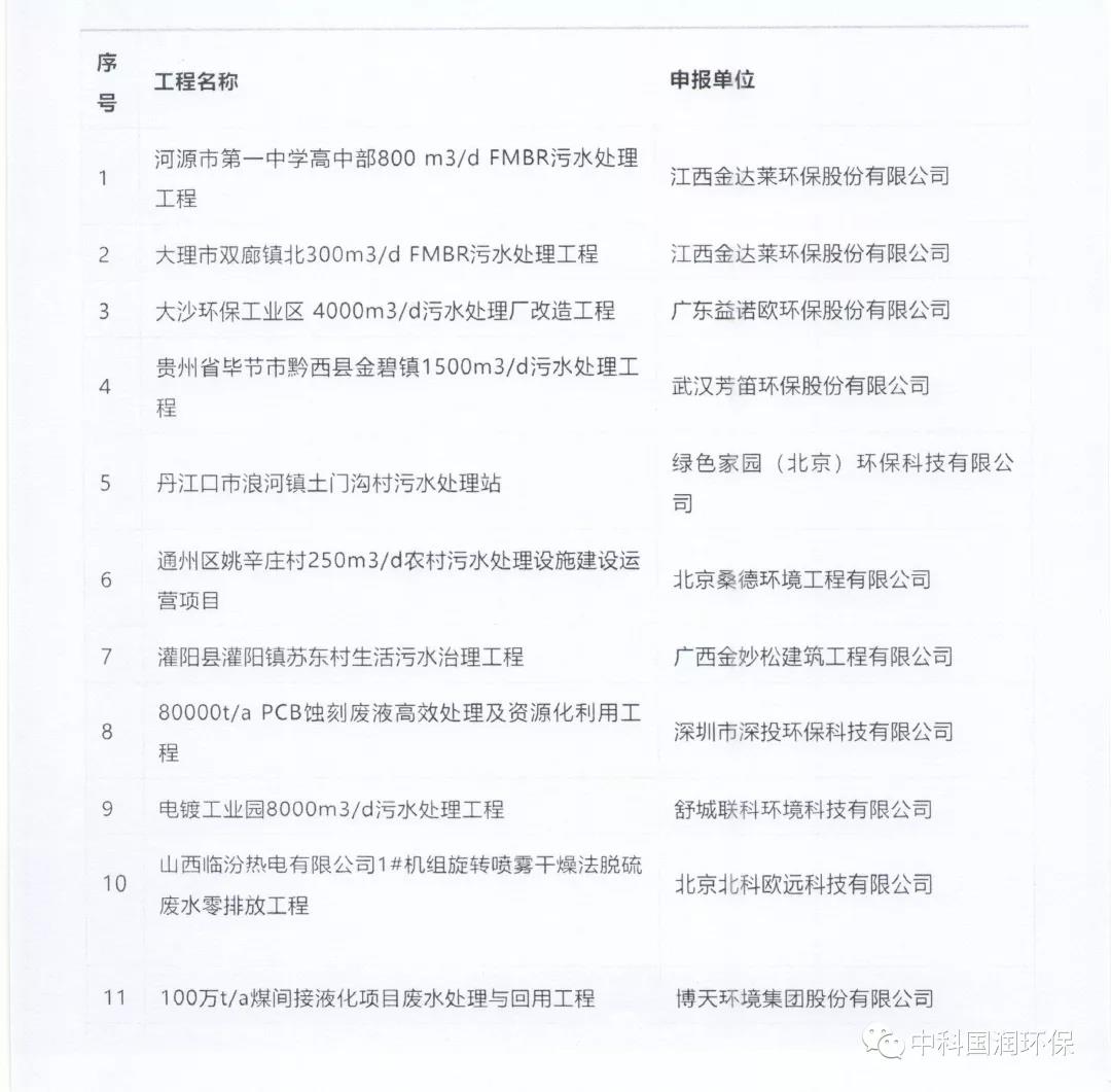 2018年重點環(huán)境保護實用技術(shù)示范工程名錄(公示稿)